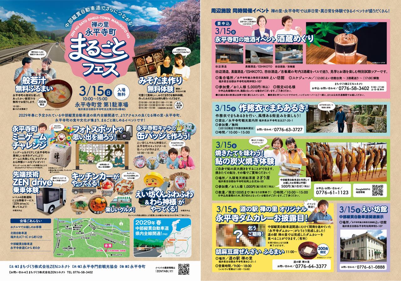 | イベント名 | 中部縦貫自動車道でつながる 禅の里永平寺町まるごとフェス |