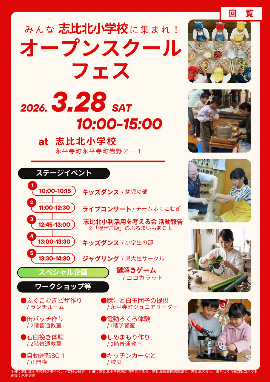| イベント名 | 志比北小学校オープンスクールフェス |